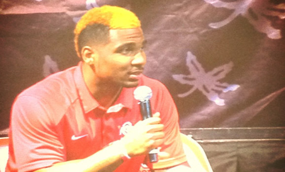 At today's Ohio State football spring kickoff luncheon, Braxton Miller showed the world his new yellow mohawk.