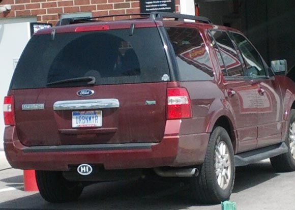 Reader Jim sent in this photo of a Ford Expedition in Gahanna with "URBNMYR" plates. It's obviously not the Urban Meyer as he drives a custom Bugatti that runs on pulp-free juice, but interesting, nonetheless.
