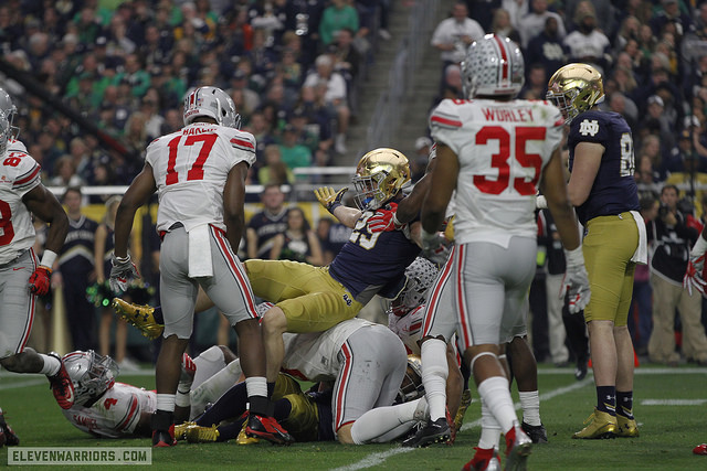 If I were an Ohio State fan, the Wisconsin game would worry me. We're going to learn more about the Badgers this weekend when they head to East Lansing (where I don't think they will win) but the big win against LSU at Lambeau Field sort of put them on the map early this season. There is a really good chance Wisconsin drops its first two Big Ten games (back-to-back road affairs at Michigan State and Michigan is tough) but it gets a week off before hosting Ohio State under the lights. Camp Randall isn't an easy place to play and Paul Chryst will have two weeks to get his guys ready. Plus, they'll likely be anxious and desperate for a Big Ten win after the next two weeks.