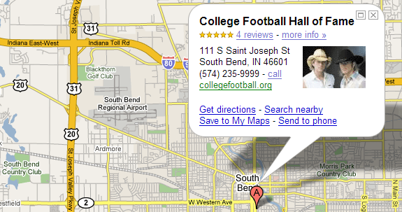 The G-brain is trying to link pictures from pages in its index to this location and selected this lovely photo from exploresouthbend.org to display. The photo was from a press release last year promoting country duo "Blue Country" singing at the 2006 induction ceremonies. That's great, but every time I see two cowboys now, I think Ledger & Gyllenhaal. Can't help it.