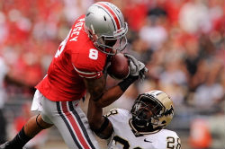 Perhaps my biggest gripe with Devier is the laziness with some of his routes. As the nation saw telestrated, he missed the soft spot in the zone early against Wisconsin which nearly led to an interception. Later in the game, he ran a disgustingly sloppy quick out which was broken up because Posey gave the route away early by not keeping his arms quiet going into his break/stop. Overall, attention to detail is lacking and we even saw it this past week getting stripped coming down after initially catching a deep pass from Pryor. Essentially, Devier should be our top receiver but he isn’t and as a result he is behind in production compared to last year.