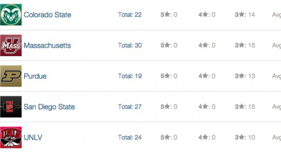Purdue currently sits No. 81 in 247's composite rankings. That's behind the likes of Massachusetts, Colorado State, and Georgia Southern. But hey, the Boilermakers beat Kansas (No. 90), so maybe Darrell Hazell just needs a couple more years to figure it out.