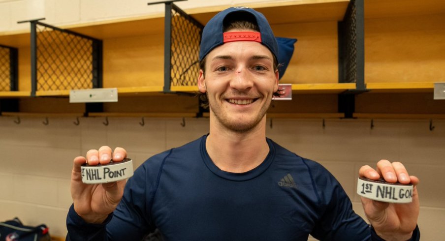 The former Ohio State forward made his NHL debut with the Columbus Blue Jackets on Monday night. Just a day later, he was named the team's MVP of the Jackets' 4-2 win over the Philadelphia Flyers, notching both his first NHL assist and goal just minutes apart.