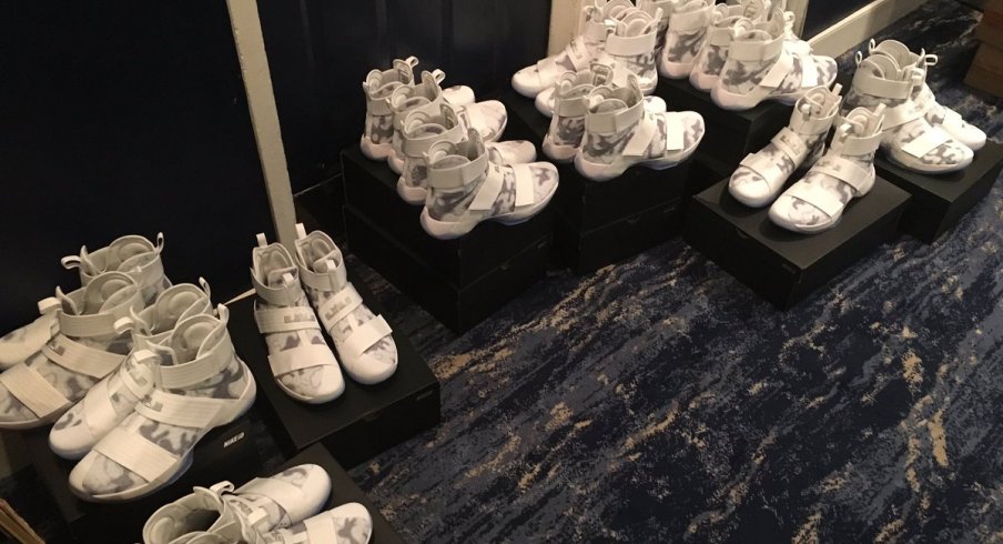 LeBron James, a renowned benefactor of the Ohio State men's basketball team, came through in the clutch once again Thursday afternoon. James gifted some white camouflage LeBron 10s to the team on the eve of its season opening tilt with Navy in Annapolis.