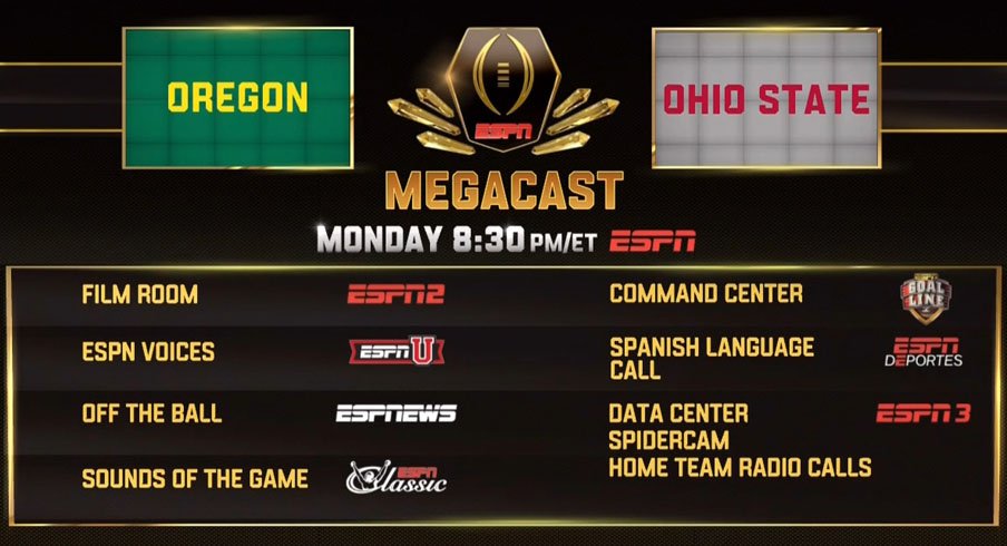 ESPN has released the details for its National Championship Megacast, which they're dubbing the "CFP Megacast" and you may want to look into renting a spare DVR or two for Monday night.