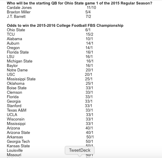 Obviously, Cardale Jones not suffering a career-ending injury played a factor in those odds, but he's the only one on that list who could be starting in the NFL in August.