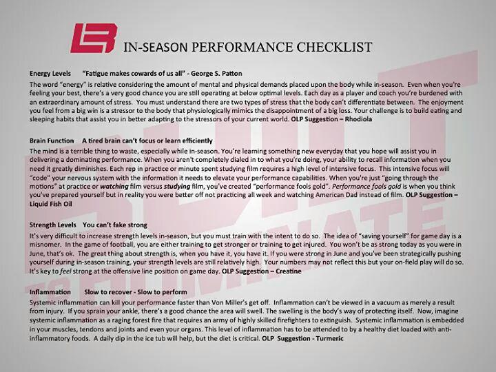 LECHUCK SWAGGER. I'm an organ donor, so my organs would end up inside other people if I ever stepped foot on an NFL field. That said, would anyone judge me if I hung LeCharles Bentley's in-season performance checklist in my shower?