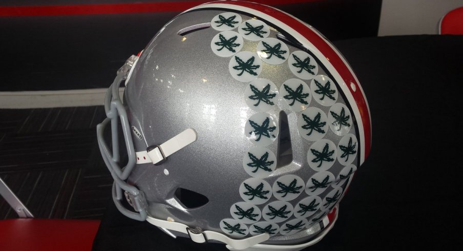 The Buckeye helmet with 27 stickers that Cam Johnston will present to Sam Foltz' family at tomorrow night's Nebraska--Ohio State game pic.twitter.com/G7XywDTHp0