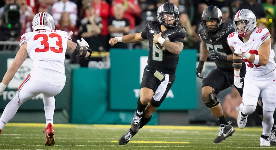 That said, there’s two good reasons for optimism that the Buckeyes can have more success running the ball without Simmons this time around even though they’ll also be without McLaughlin. For one, the Buckeyes made strides running the ball against Tennessee, running for 156 yards and four touchdowns on 4.7 yards per carry after averaging only 3.5 ypc in their first two games without McLaughlin. Secondly, Oregon’s rushing defense has looked vulnerable against top competition, particularly in its last game against Penn State, in which the Nittany Lions ran for 292 yards and two touchdowns on more than eight yards per carry.