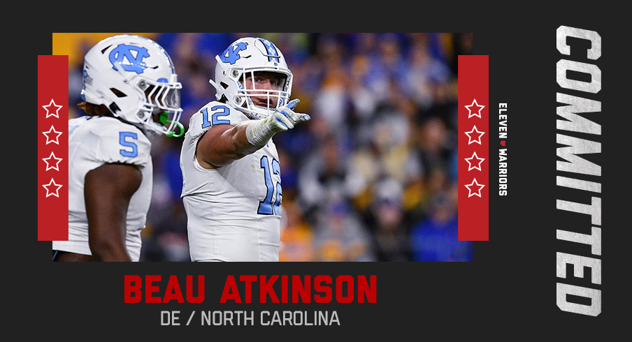 After former North Carolina defensive end Beau Atkinson visited Ohio State on Monday, Pete Nakos and Steve Wiltfong of On3 marked the Buckeyes as frontrunners to land the 6-foot-6, 265-pound edge rusher. Atkinson had a productive career with the Tar Heels, recording 54 tackles, 11 sacks and one forced fumble in two seasons.
