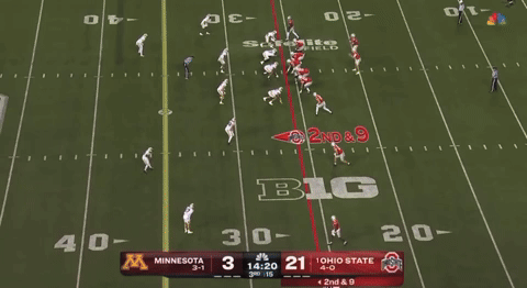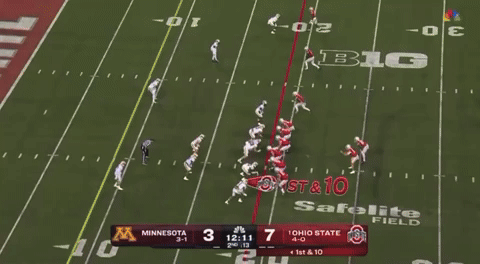 With such a dominant offensive line in front of him, Sayin was only pressured on four dropbacks against Minnesota, as he completed 3-of-4 passes for 30 yards under pressure. That came a week after he was pressured on eight throws in Seattle.