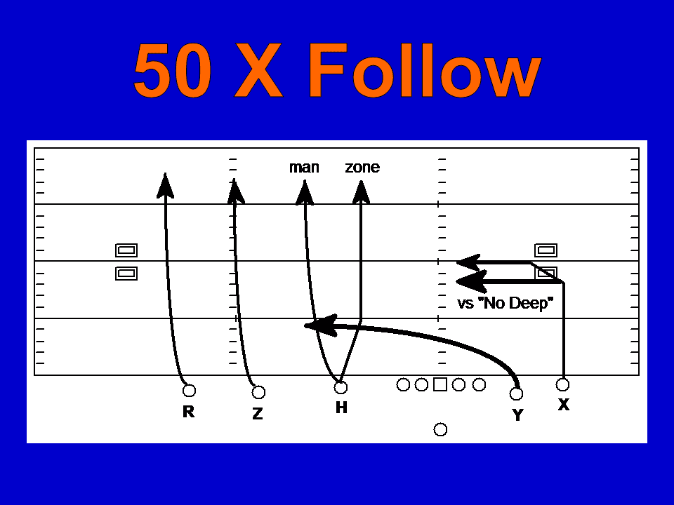 If Jinks does end up bringing some 'Air Raid' principles with him, Moore will likely benefit the most. In lieu of a traditional running game, the Red Raiders often turn short passes, like this 'Follow' route combination, into a designed run with one intended receiver while the remaining wideouts cut off their patterns quickly to block downfield.