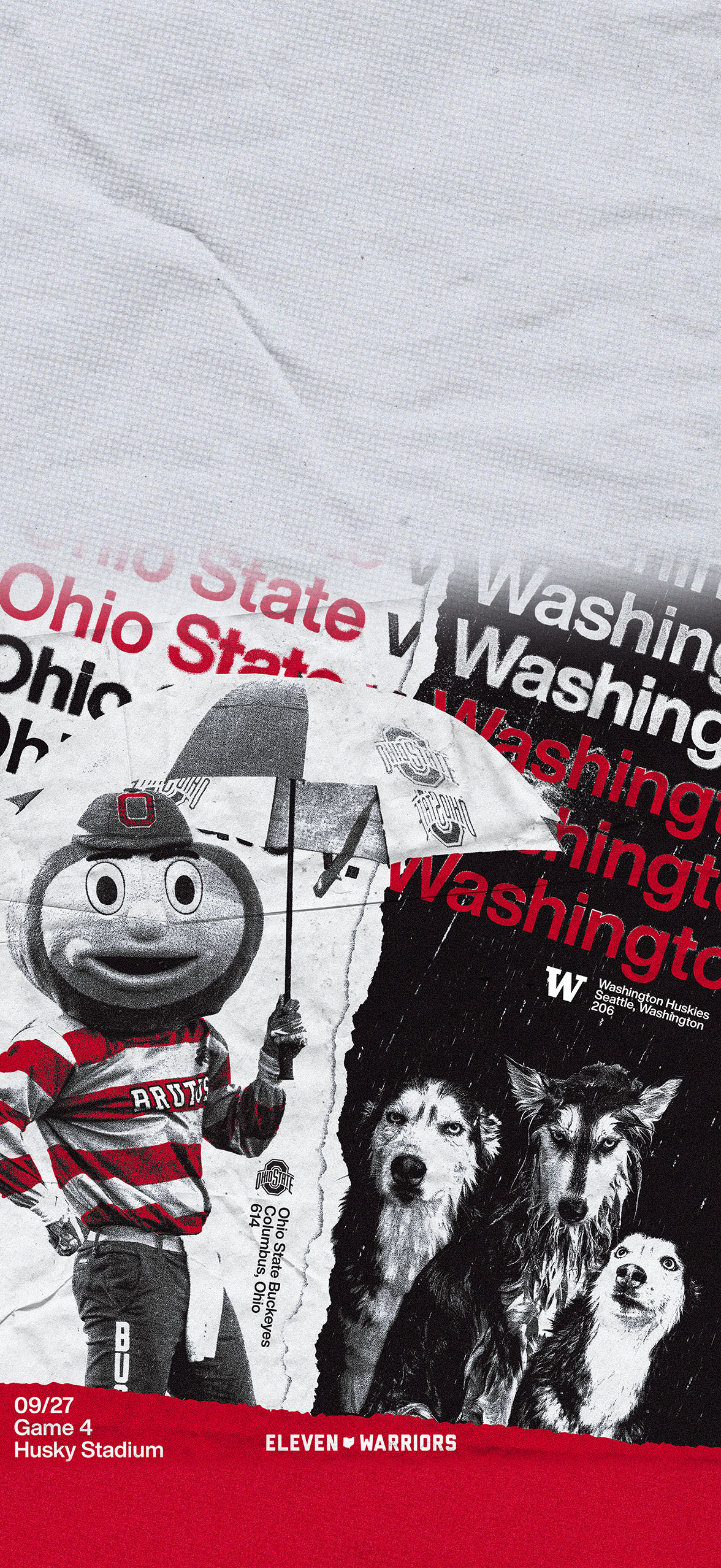 The Washington Game Poster, designed by Sam Harachis of Mythios Design Co., continues the beloved series of Eleven Warriors Game Posters. Creative director Walt Keys started the tradition for Ohio State vs. Miami (OH) in 2012, Urban Meyer's debut as the Buckeyes' head coach. Keys led the project for a decade before passing the torch to Harachis in 2022.