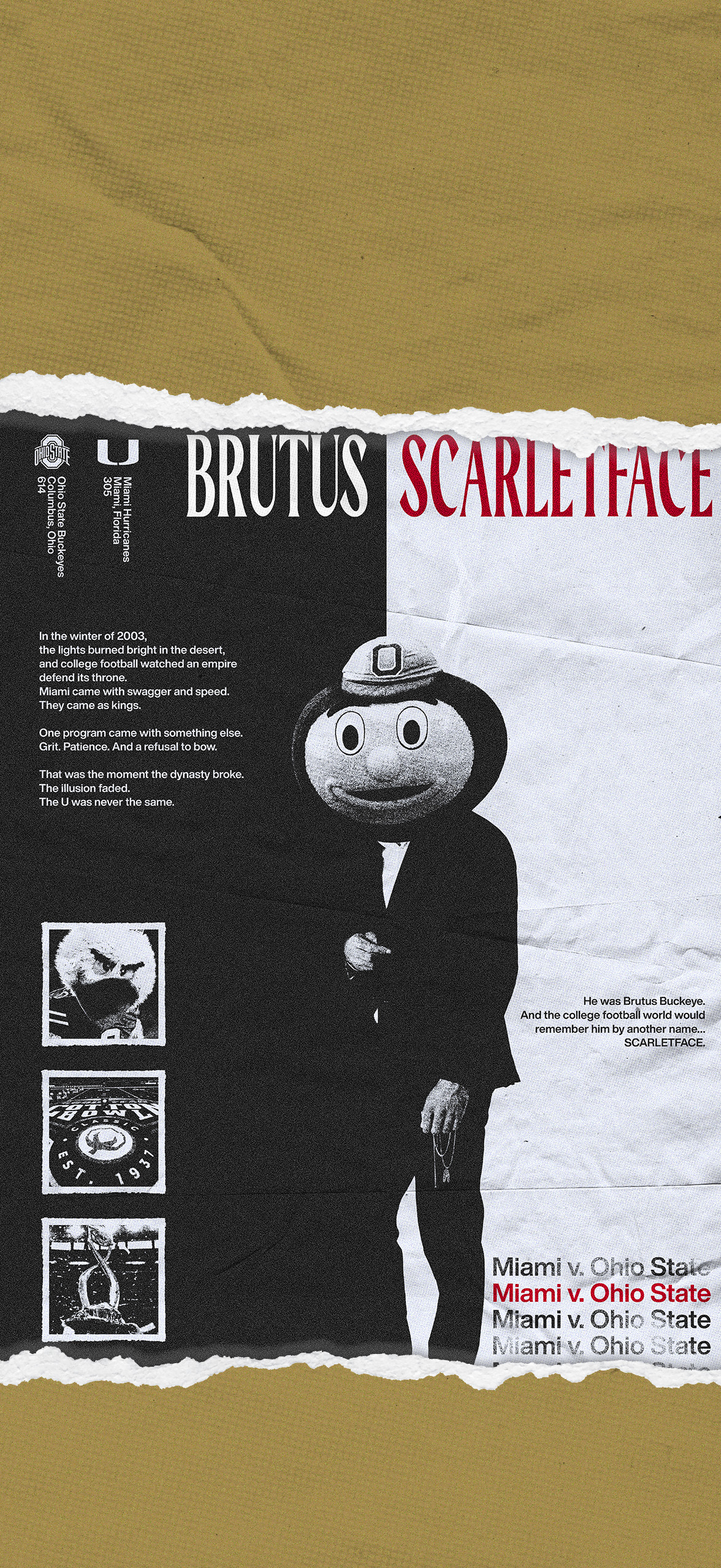 This week's Cotton Bowl Game Poster pays homage to Al Pacino's Scarface, featuring Brutus Buckeye as Scarletface.