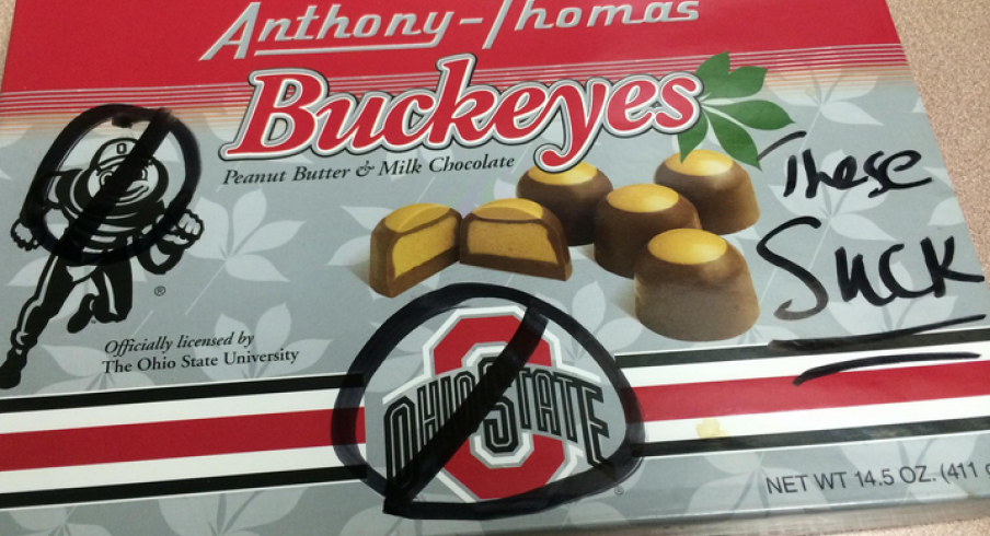 Look, folks: I'm going to play this one straight with y'all. I think the person who defaced u/MoreCowbellllll's officially licensed box of Anthony-Thomas chocolate Buckeyes should be put into a cage.