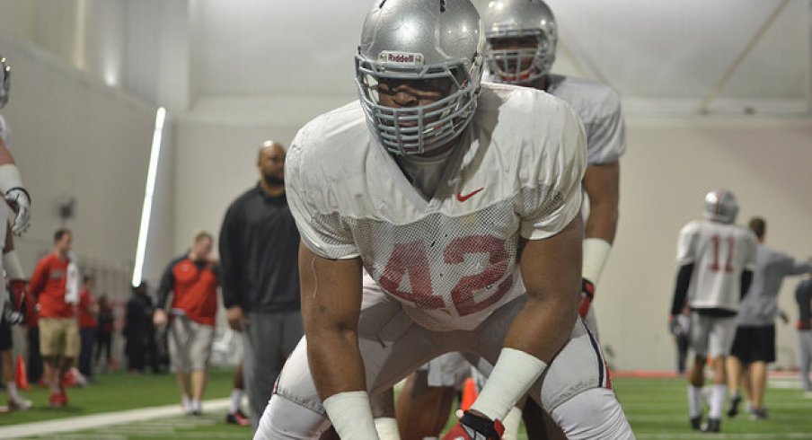 Seventeen snaps. He counted. He lined up at nose tackle for both the scarlet and gray teams in the fourth quarter.